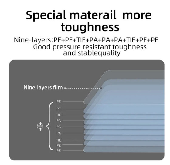 - Core Selling Points: Nine-Layer PA+PE Material (High Toughness & Pressure Resistance), Non-Return Valve (Long-Term Airtight), Shock-Proof & Leak-Resistant (Single Column Leakage Still Works), 80% Recyclable & Degradable, Customizable Size, Free 1-Meter Sample