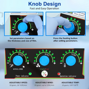 - Knob-Based Operation: 3 intuitive knobs (SPEED, WIND, TEMP) let you adjust settings based on film thickness/size—no technical expertise needed.
